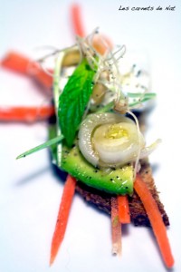 Non classé tartine-carottes-graines-germees 29 mars 2011 0 Comments Vous aimerez aussi Patidou farci au…patidou !… 10 novembre 2011 Tartine de dés de dinde aux oignons, à la crème et au gingembre, façon bruschetta d’hiver… 29 janvier 2012 Patrice et Yuri… 25 juillet 2010 Pas de commentaire Laisser une réponseNom * E-mail * Site web Enregistrer mon nom, mon e-mail et mon site dans le navigateur pour mon prochain commentaire.